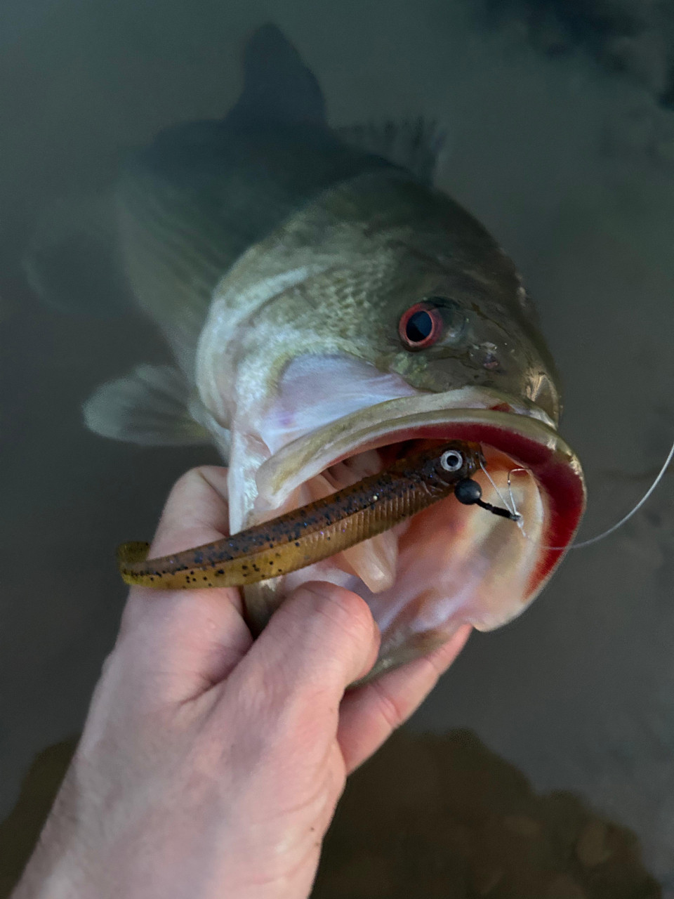 Ho utilizzato una testina Zappu bowhead da 3,5gr abbinata a delle esche di buone dimensioni, gamberi o creature, per una presentazione super lenta che in questo periodo può fare la differenza.
