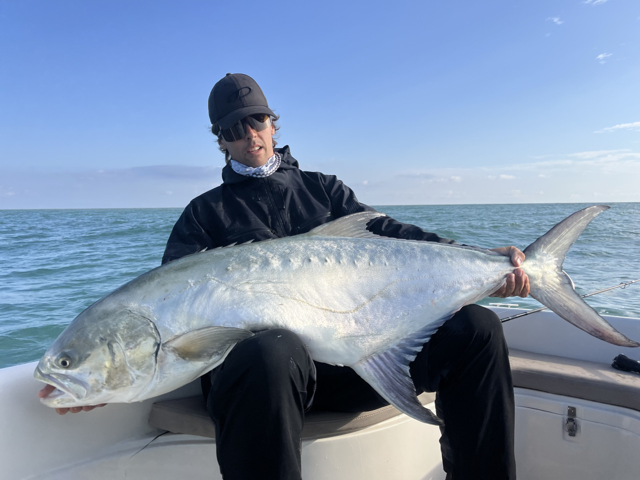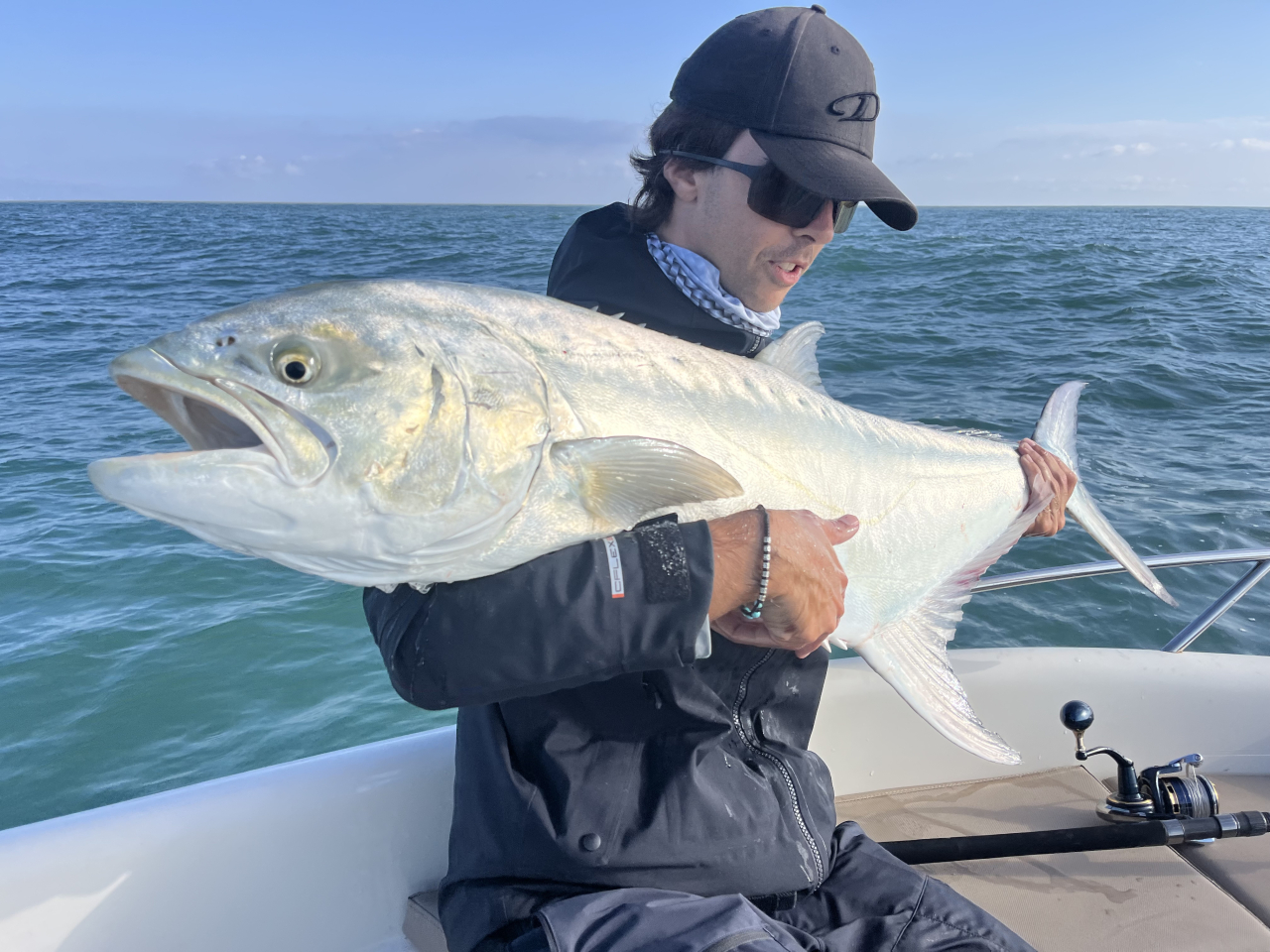 Inizia un combattimento lungo e delicato: il pesce ci porta a zonzo per quasi un miglio prima di arrendersi. Quando finalmente lo abbiamo issato in barca, la sua mole parlava da sola.