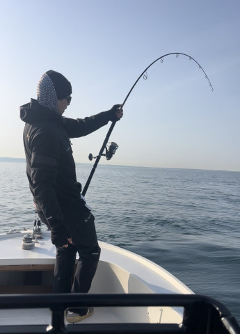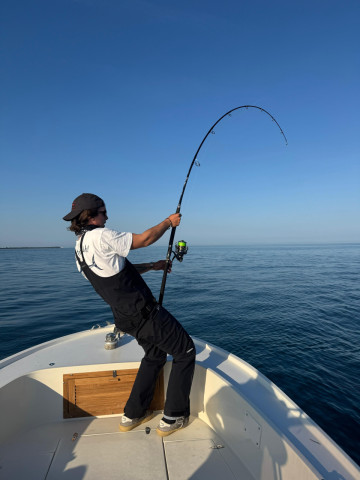 Poi, proprio quando stavamo rientrando, in una zona tutt'altro che promettente, accade l'inaspettato: un tonno salta. Una situazione completamente casuale, di quelle che difficilmente fanno pensare a un esito positivo. E invece… lancio preciso, ferrata, e canna piegata.