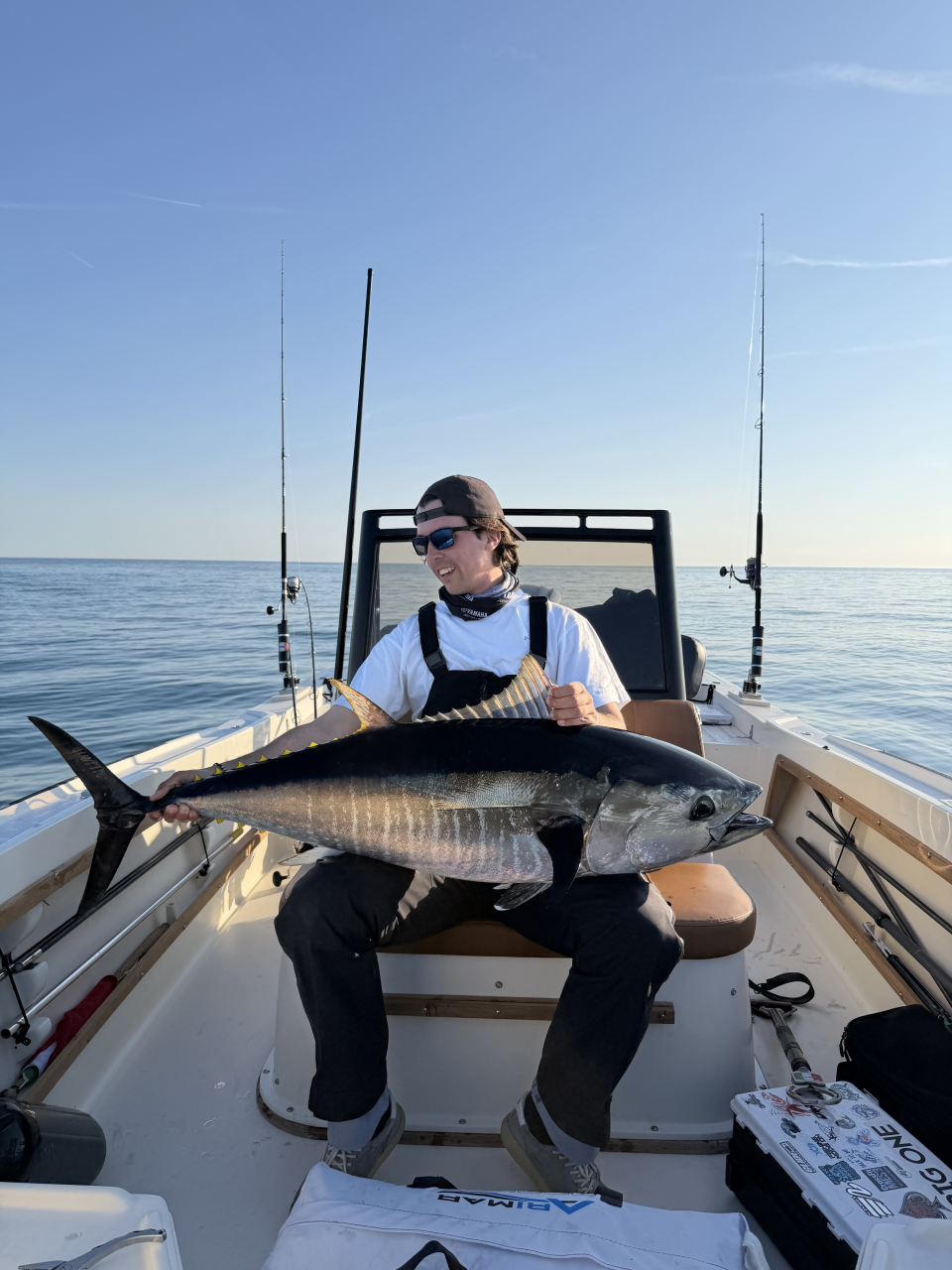 L'ultima uscita è stata senza dubbio la più intensa. Per tutta la giornata abbiamo lanciato su numerose mangianze e situazioni diverse: dall'alba, quando l'attività era più vivace, fino all'imbrunire, con un netto calo dei segnali. Eppure, i tonni sembravano non voler collaborare. Nonostante i continui cambi di artificiali e approcci, nessuna risposta.