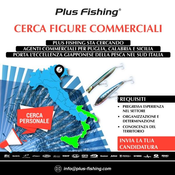 Plus Fishing, azienda leader nell’importazione e distribuzione di attrezzatura da pesca giapponese in Europa, è alla ricerca di agenti commerciali per le regioni Puglia, Calabria e Sicilia.
